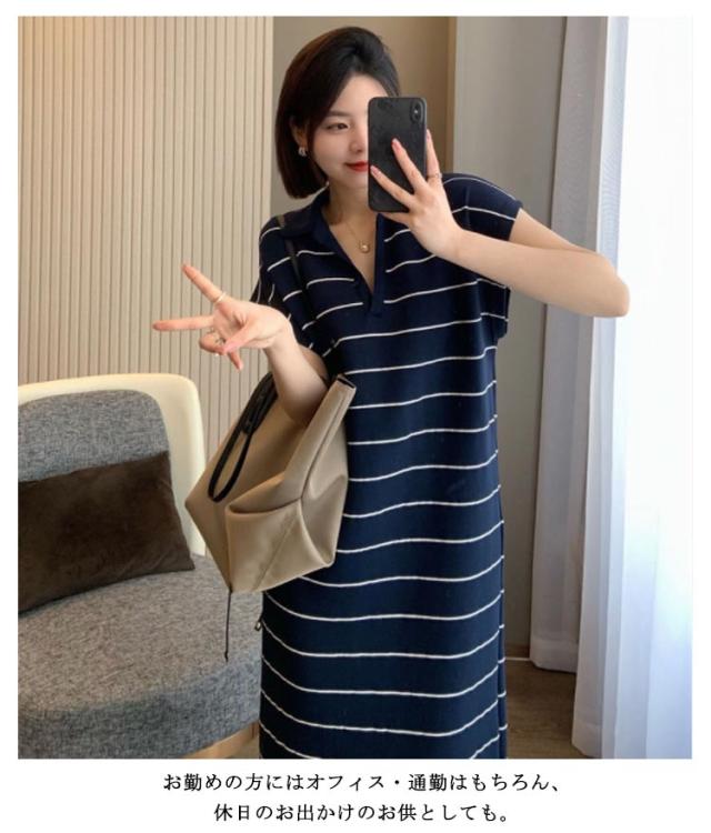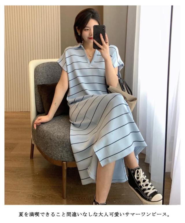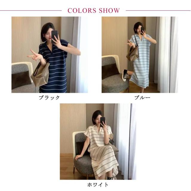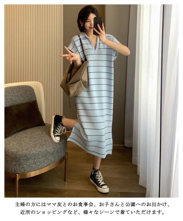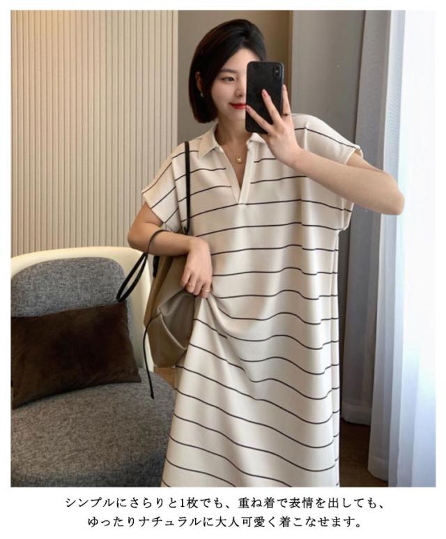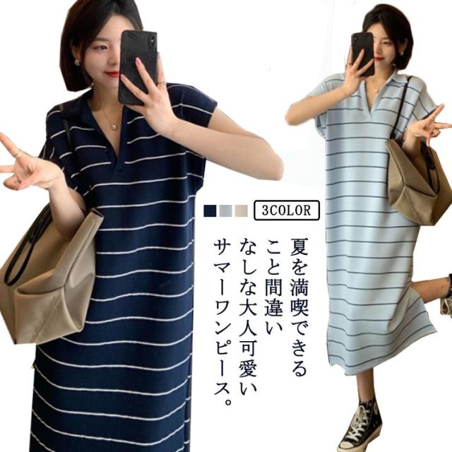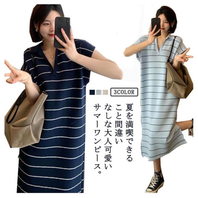 ワンピース 夏 Tシャツワンピース tシャツワンピ 半袖 ロング丈ワンピース ロングワンピ ワンピ ボーダー柄 体型カバー 普段着 ルームウェア 通学 オフィス 通勤 ゆったり 大きいサイズ ホワイト ブルー ブラック