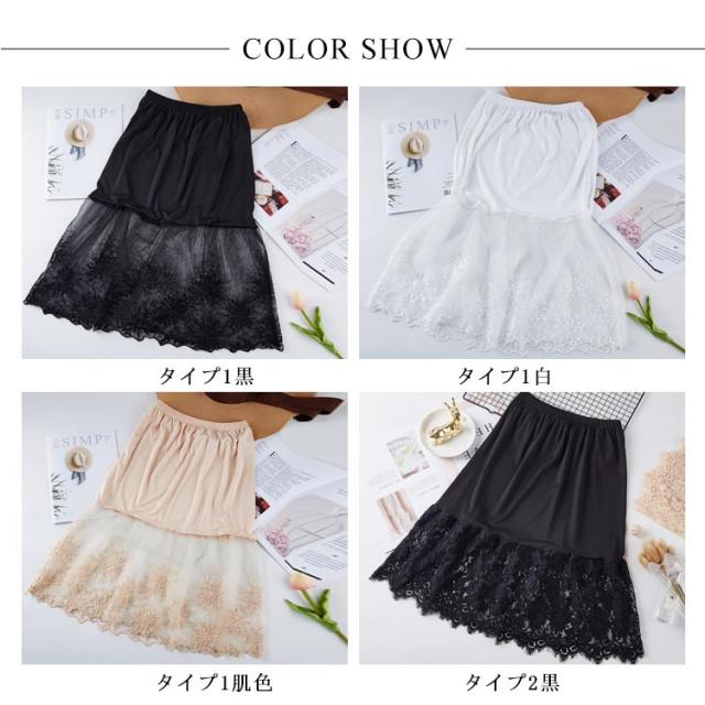 ペチコート ショート丈 透け防止 インナー スカート 透けない スカート ロングレース 刺? 切り替え スリップ インナー シンプル スリップ 重ね着 ワンピースの下に L XL