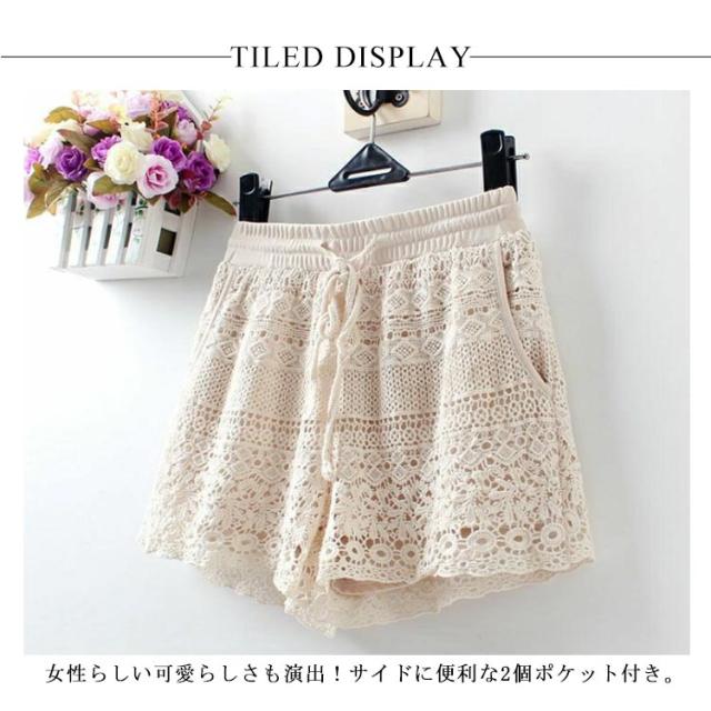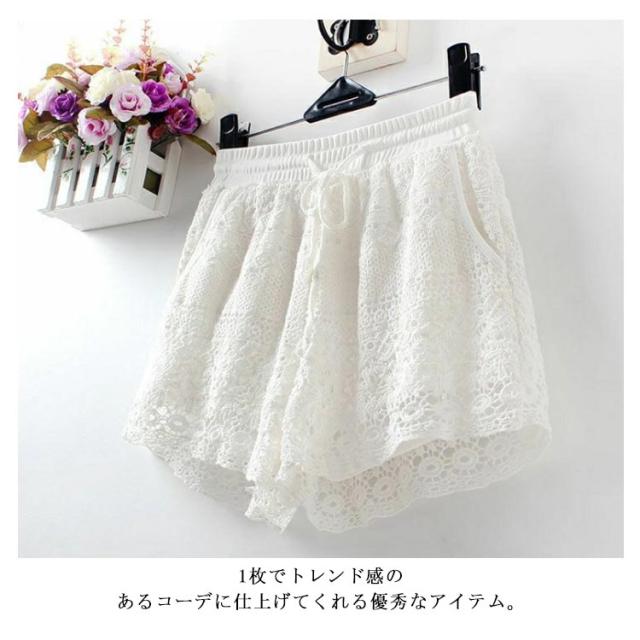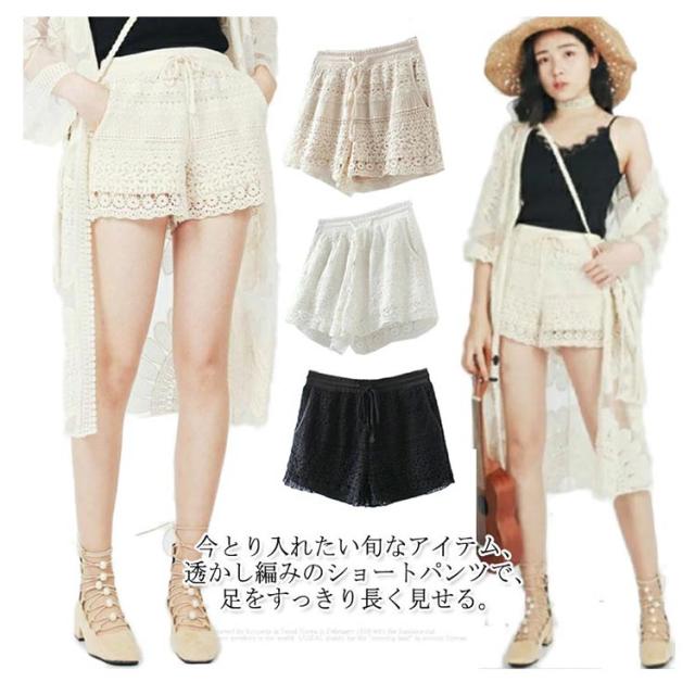 | 今とり入れたい旬なアイテム、透かし編みのショートパンツで、足をすっきり長く見せる。 ウェスト紐で、ストレスフリーに着こなせます着心地がよくて、楽ちんに履きこなせる簡単に旬なスタイル! Tシャツやサマーニットなどトップスに合わせやすい! 女性らしい可愛らしさも演出!サイドに便利な2個ポケット付き。 1枚でトレンド感のあるコーデに仕上げてくれる優秀なアイテム。 | |