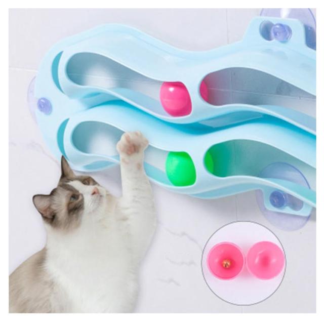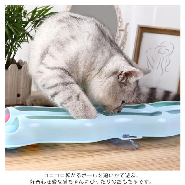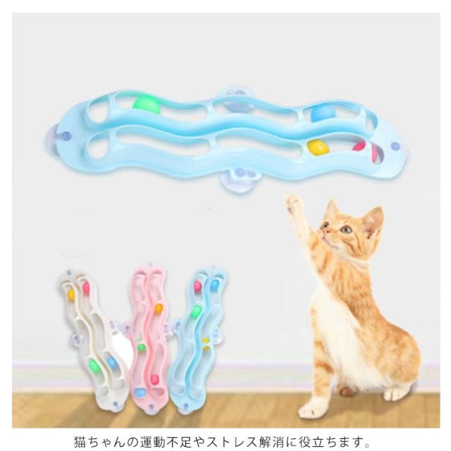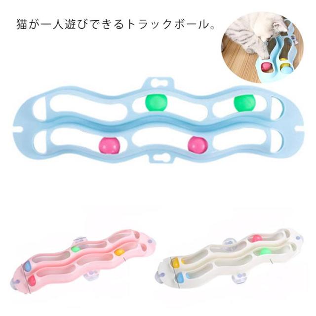 猫 トラックボール 猫用おもちゃ トラックンロール 2列 窓用 猫おもちゃ ねこおもちゃ ネコ玩具 一人遊び コロコロ 転がる レールボール 吸盤式 貼り付ける ストレス解消 運動不足解消 猫用品 ペット用品 ペット玩具 雑貨