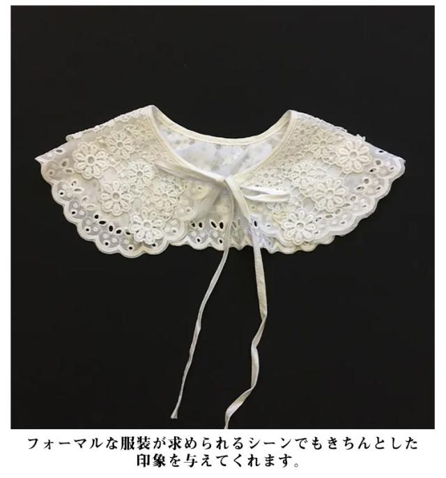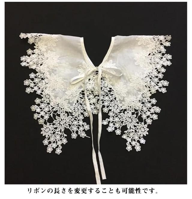 | シンプルなお洋服も、一瞬でお出かけモードに! 可愛い総レースデザイン付け襟 リボンの長さを変更することも可能性です。! シンプルな洋服にも合わせやすいデザインとなっております。 付けるだけて、全くちがったイメージになります! フォーマルな服装が求められるシーンでもきちんとした印象を与えてくれます。 | |