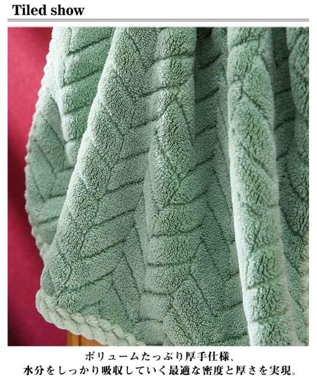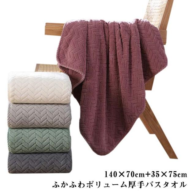 | 140×70cm+35×75cmふかふわボリューム厚手バスタオル。 ボリュームたっぷり厚手仕様、水分をしっかり吸収していく最適な密度と厚さを実現。 柔らか厚手が気持ちいい、毎日の生活がちょっと豊かになります。 ぜいたくなボリューム感とふんわりざっくりな肌触りのホテル仕様タオル | |