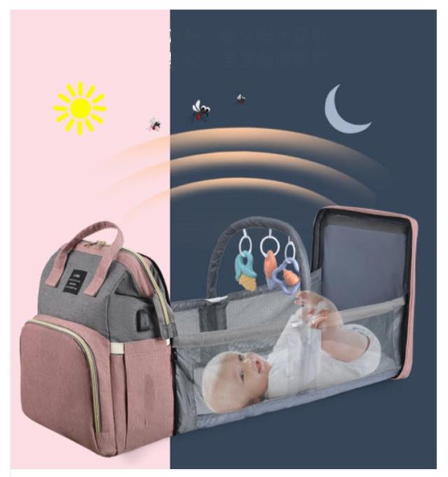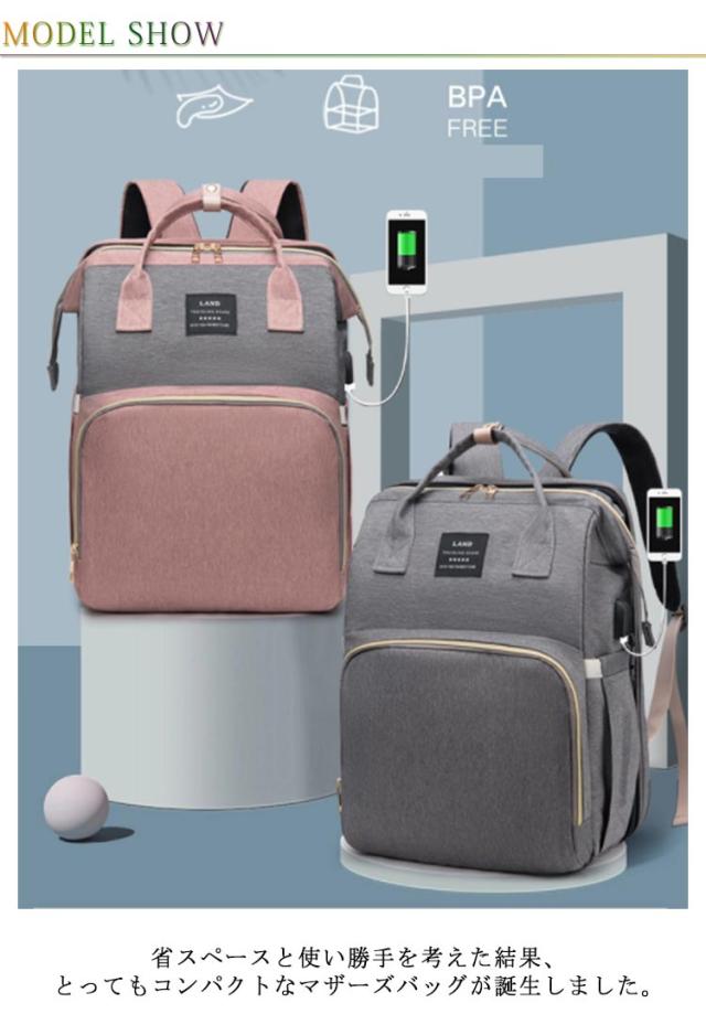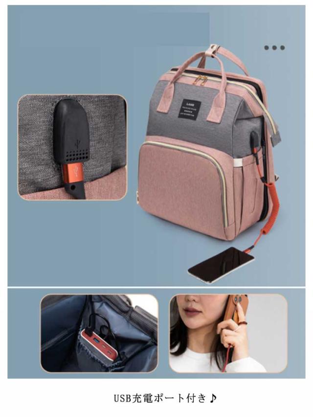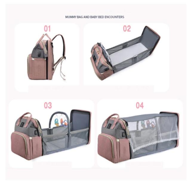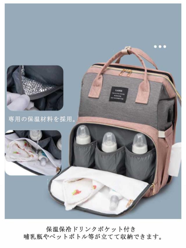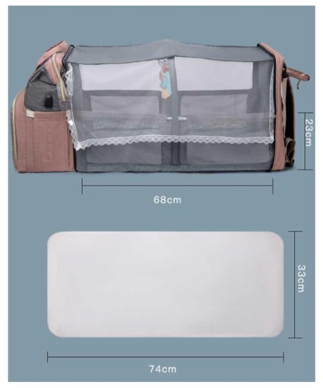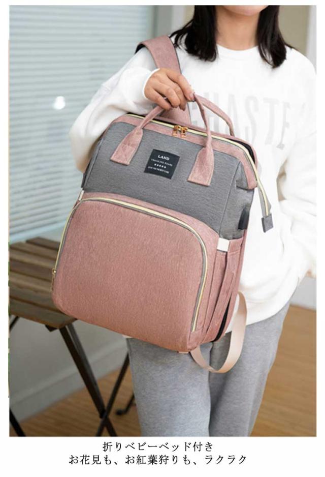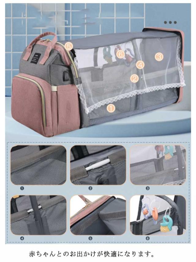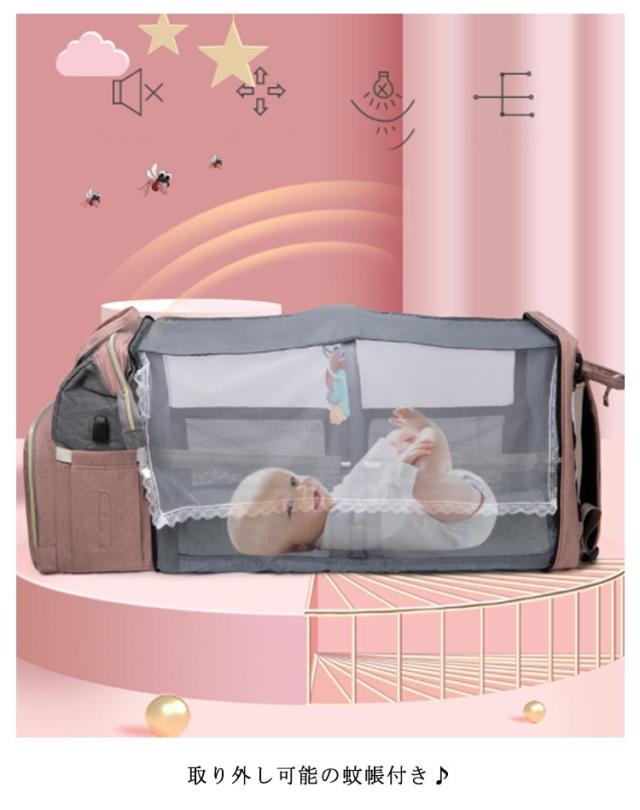 マザーズバッグ ベビーベッドバッグ 2way ママバッグ 大容量 多機能 折りたたみ 取り外し可能 蚊帳付き ママバッグ 出産お祝い 旅行アクセサリー 防水 軽量 保温ポケット付きUSB充電ポート付き 掛けるベルト ベビー用品収納
