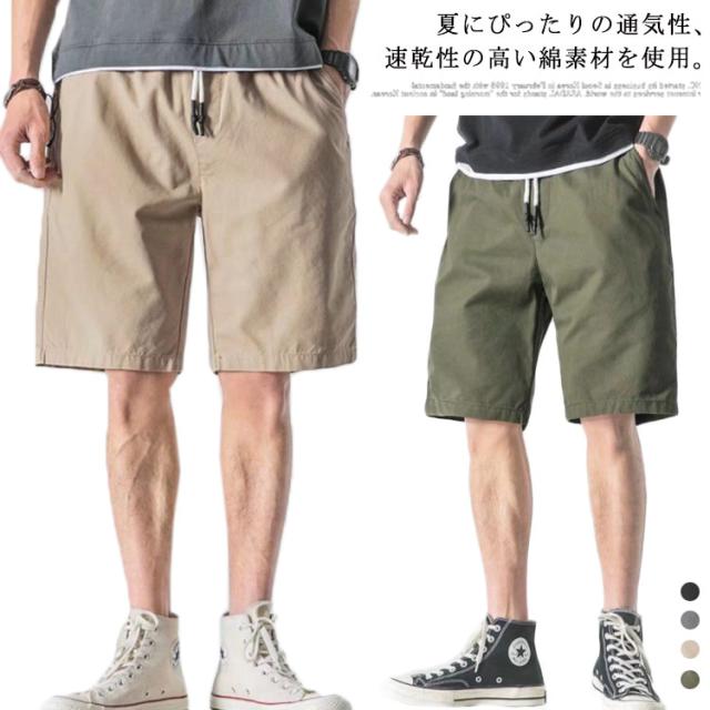 2枚セット!ハーフパンツ メンズ 短パン 綿 スポーツ ショートパンツ ズボン 短め 膝上 ウエストゴム 調整紐付き カジュアル 大きいサイズ おしゃれ クライミング 膝丈 コットン 無地 夏 送料無料