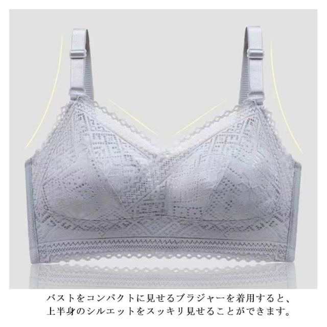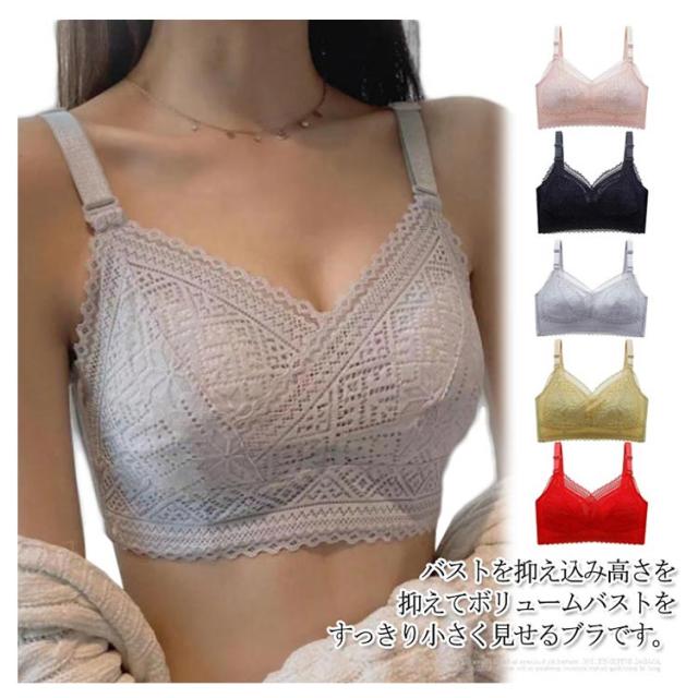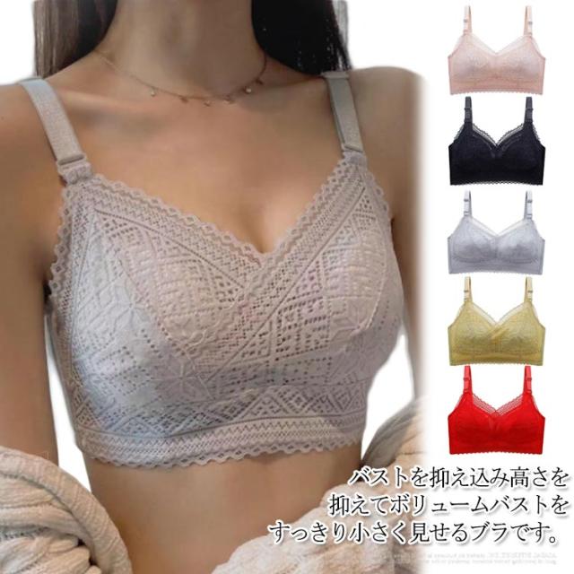 【送料無料】ブラジャー 小さく見せる フルカップ 薄手カップ 谷間カバー 胸を小さく見せるブラ 痩せ見え ノンワイヤー レース ブラ 補正下着 85 90 95 脇高 胸元カバー 着?せ 谷間を隠して 30代 40代 50代
