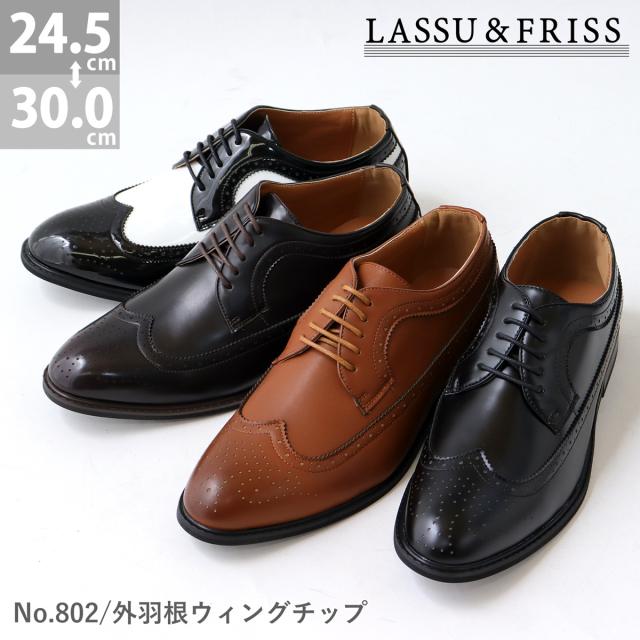 ビジネスシューズ メンズ 靴 革靴 紳士靴 外羽根 ウィングチップ 大きいサイズ 24.5-30cm 802 ラスアンドフリス