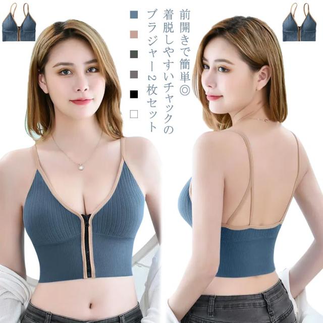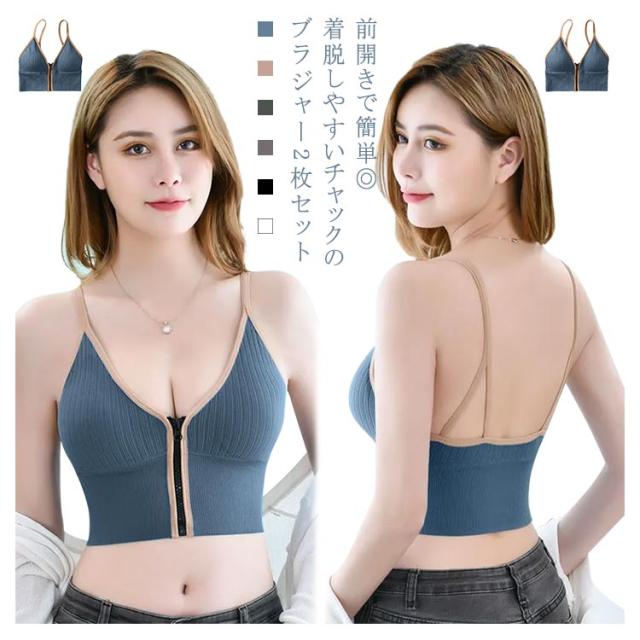2枚セット! ブラジャー ノンワイヤー フロントファスナー 前開き スポーツブラ ブラトップ カップ付き インナー トップス 落ちない バストアップ 脇肉 授乳 見せブラ キャミ ルームウェア 下着 肌着 レディース 女性 スポーツウェア ヨガウェア 送料無料