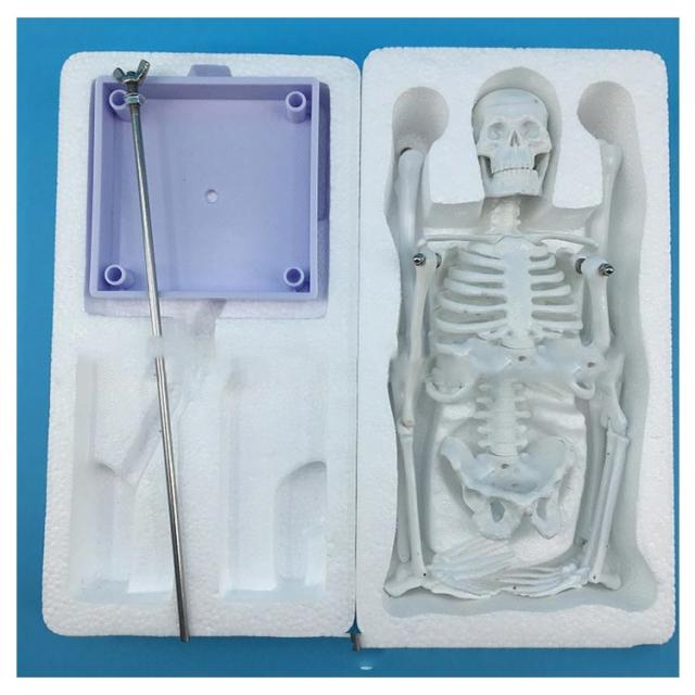 | 台座付きの人体骨格標本 45cm 1/4タイプの骨格模型となります。 簡単に組立できるキットとなっており、教育用や学生の学習用教材として、全身骨格となります。 45cm小型なので勉強会や講演会などにも持ち運び可能となります。壊れにくく軽いのが特徴です。 肩関節や膝、手首だけでなく、股、膝、足首も可動性のある造りとなっております。頭部部分は開口する事が出来ます。 スタンドから外して、平置きしてのポージングも自然な格好をする事が出来ます。 人体模型の基本構造とポージング学習に最適の模型です。 | |