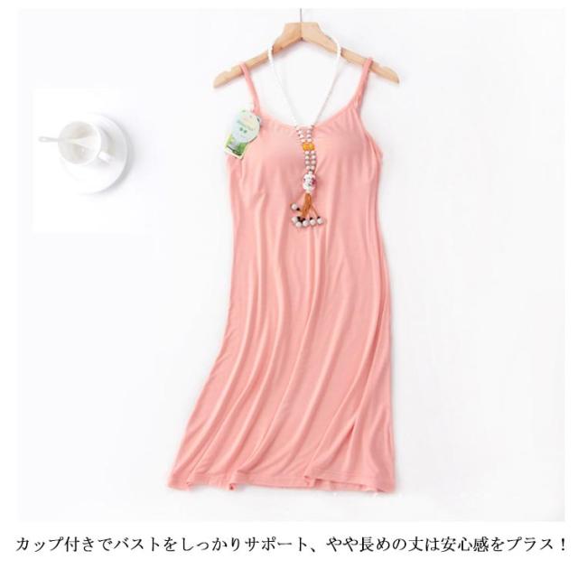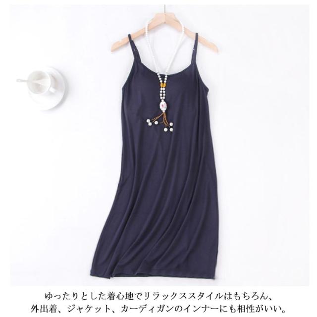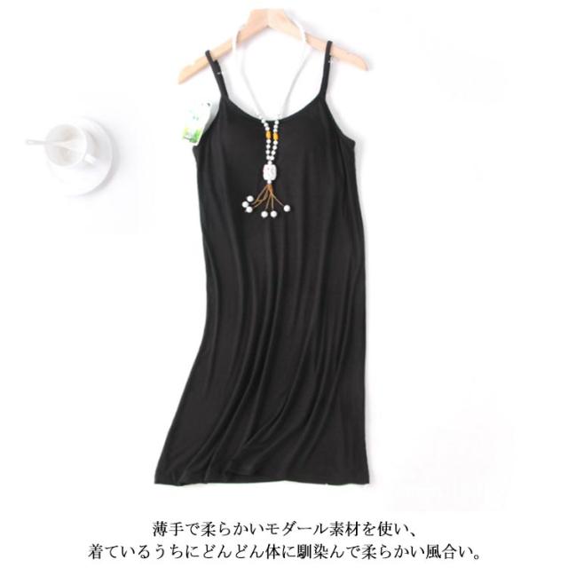 | 着心地もよく肌にもやさしいカップ付きキャミワンピ 薄手で柔らかいモダール素材を使い、着ているうちにどんどん体に馴染んで柔らかい風合い。 カップ付きでバストをしっかりサポート、やや長めの丈は安心感をプラス! 肩ひもはアジャスター付き、好きな長さを調節可能です。 ゆったりとした着心地でリラックススタイルはもちろん、外出着、ジャケット、カーディガンのインナーにも相性がいい。 | |