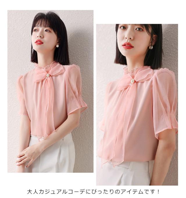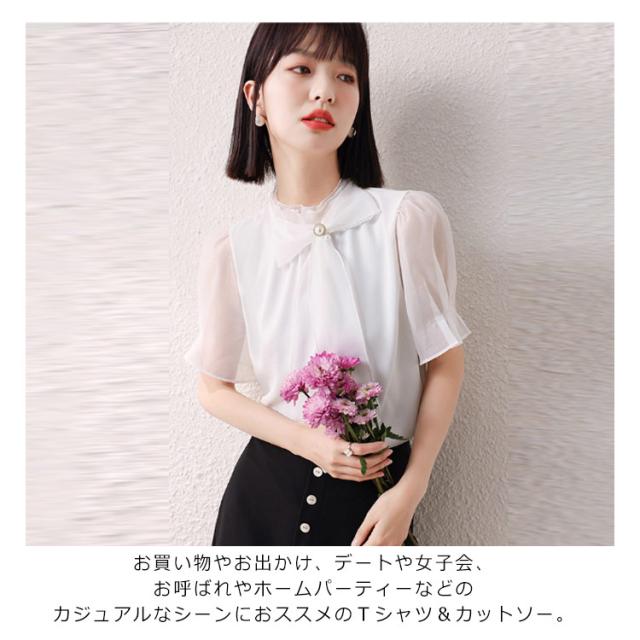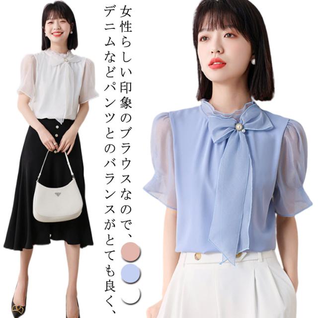 チュニック シフォン ブラウス リボン 送料無料 半袖 トップス チュニック 夏 レディース 春夏 チュニック 可愛い 夏服 夏物 10-30代 40代 50代 60代 安い 大きいサイズ