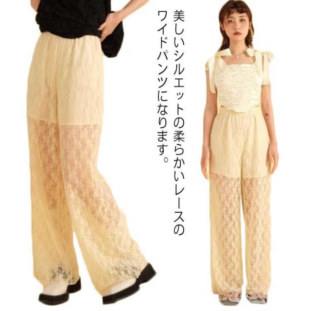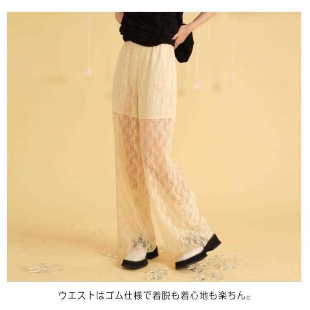 レディース 楽ちん ワイドパンツ 透かし ウエストゴム レース 透け感 細見え シアー 透け感 美脚 カジュアル きれいめ ズボン ゆったり ロング丈 着痩せ ボトムス 体型カバー レイヤード シースルー