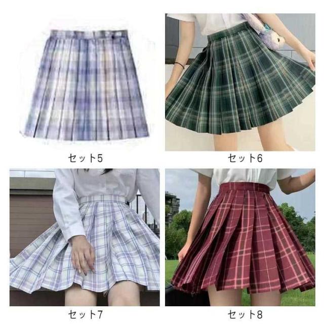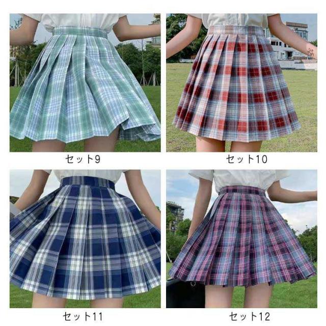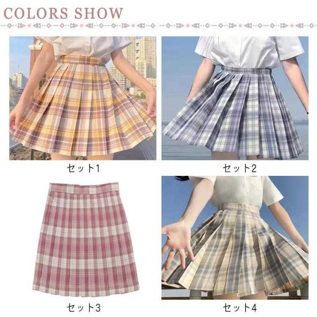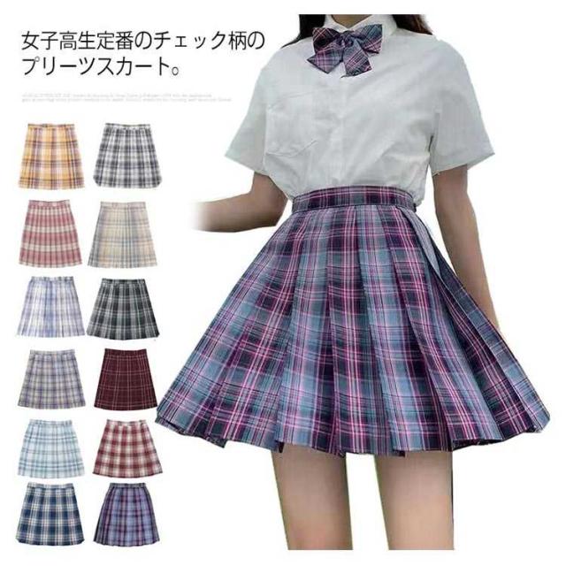 チェック柄 中学生 2点セット 学生服 ミニ丈 女子JK制服 ハイウエスト コスチューム衣装 ボトムス 衣装 仮装 コスプレ レディース 高校生 可愛い XS-2XL スカート+リボン 学園祭 大人 プリーツスカート