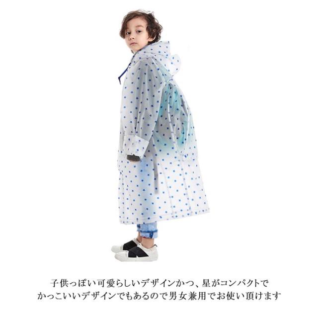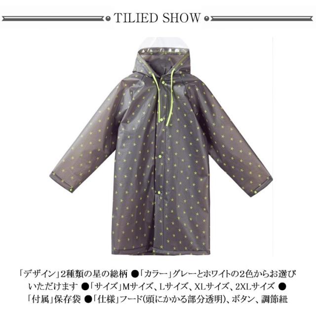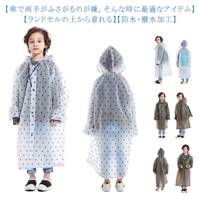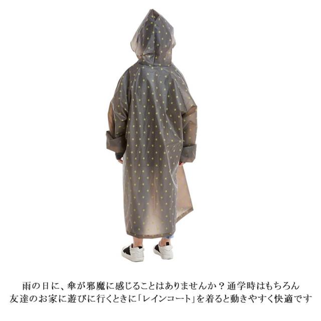 | 【傘で両手がふさがるのが嫌。そんな時に最適なアイテム】雨の日に、傘が邪魔に感じることはありませんか?通学時はもちろん、友達のお家に遊びに行くときに「レインコート」を着ると動きやすく快適です。子供っぽい可愛らしいデザインかつ、星がコンパクトでかっこいいデザインでもあるので男女兼用でお使い頂けます。 【ランドセルの上から着れる】ランドセルやリュックの上から着て頂けますので、大変便利なアイテムとなっております♪また、丈感もひざ下までの丈となっており、濡れにくく雨の日をお過ごしいただけます♪ 【商品仕様】 ●「デザイン」2種類の星の総柄 ●「カラー」グレーとホワイトの2色からお選びいただけます ●「サイズ」Mサイズ、Lサイズ、XLサイズ、2XLサイズ ●「付属」保存袋 ●「仕様」フード(頭にかかる部分透明)、ボタン、調節紐 【防水・撥水加工】本製品は、レインコートに防水・撥水加工が施されており、水を通しにくく、はじきやすいです。雨粒や水滴はもちろん!汚れも付きにくい仕様となっておりますので、元気なお子様が雨の日の帰り道に激しく動いても汚れにくい為、お手入れも楽ちんです。 | |