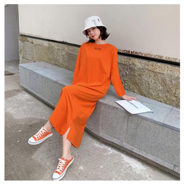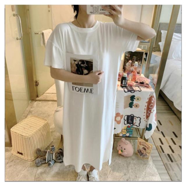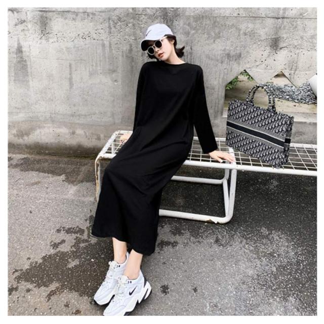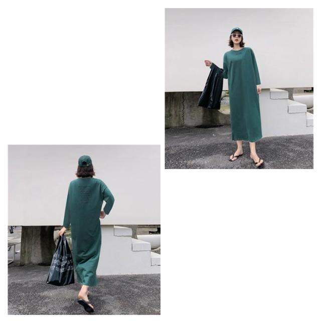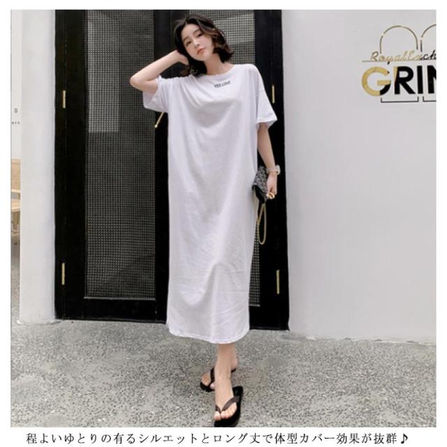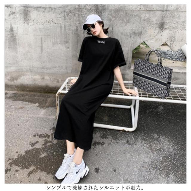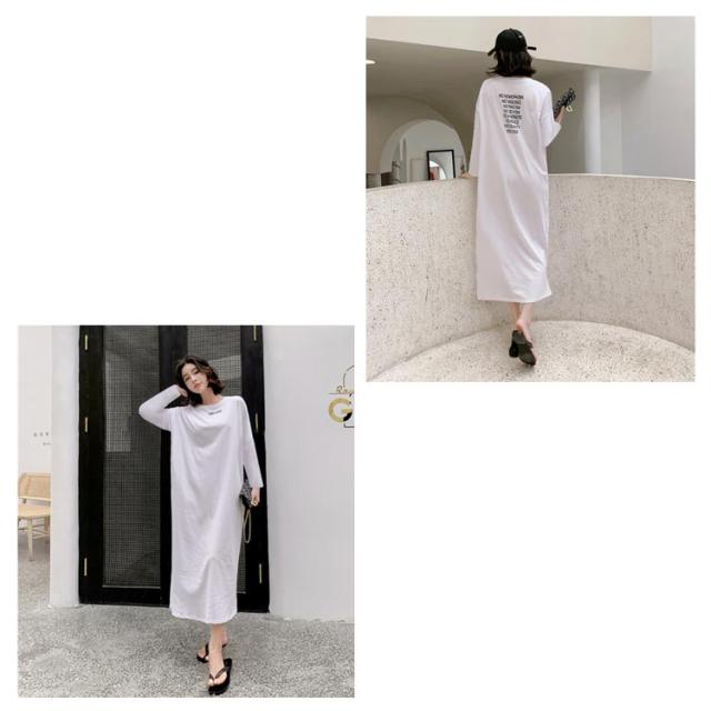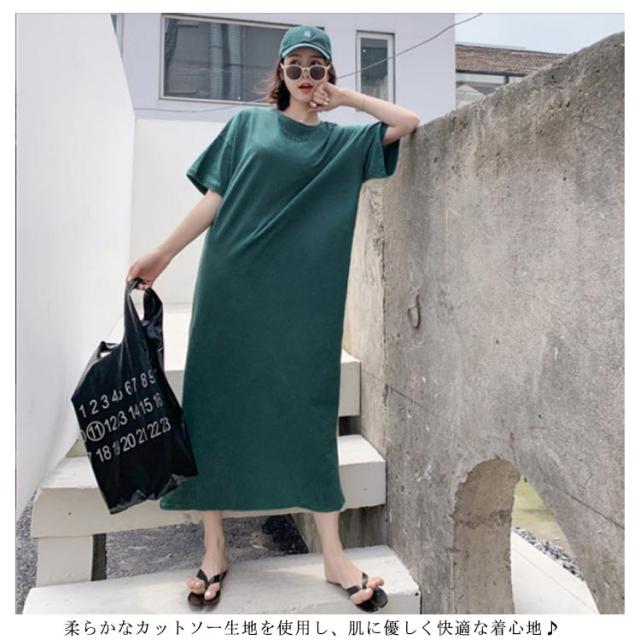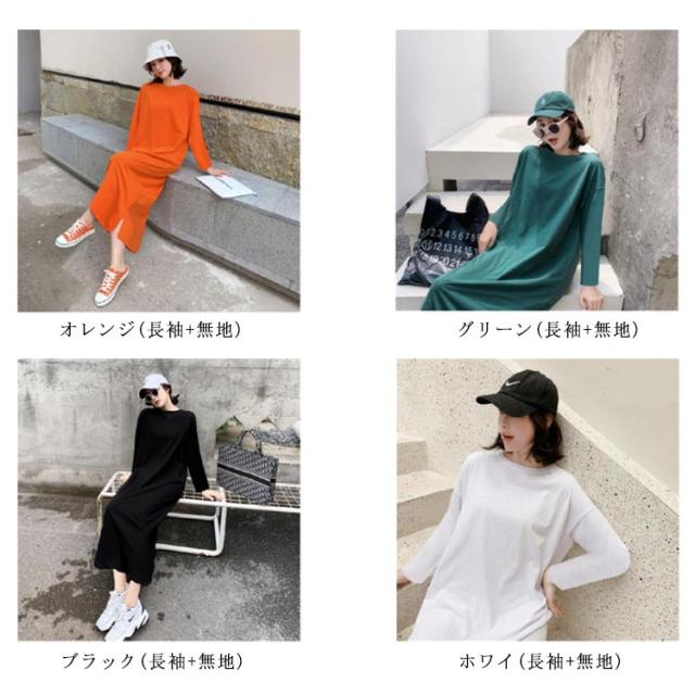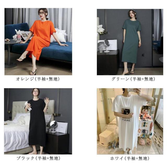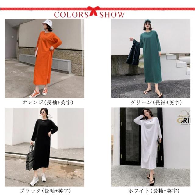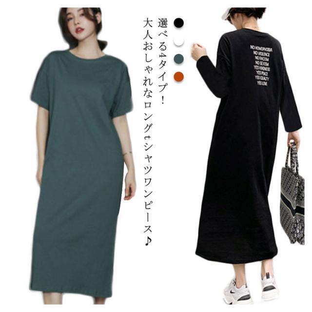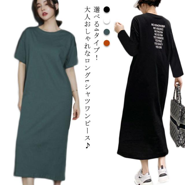 半袖 長袖 マキシ丈 ワンピース 夏 秋 ルームウェア ワンピース 春 レディース 薄手 30代 無地 英字 シンプル 体型 通勤 オフィス S〜4XL 20代 Tシャツワンピース ラウンドネック