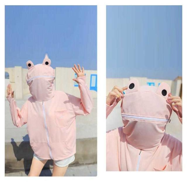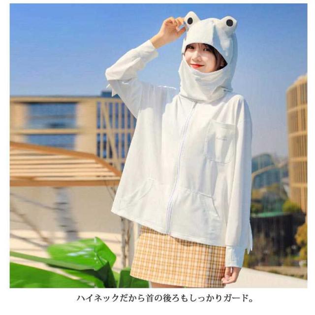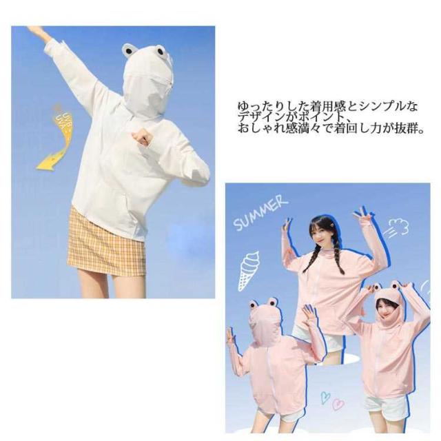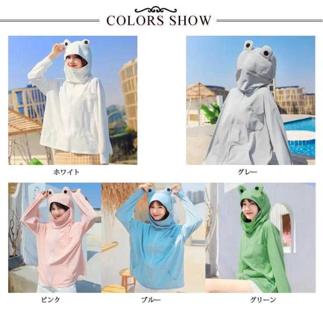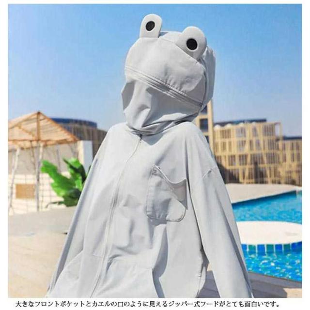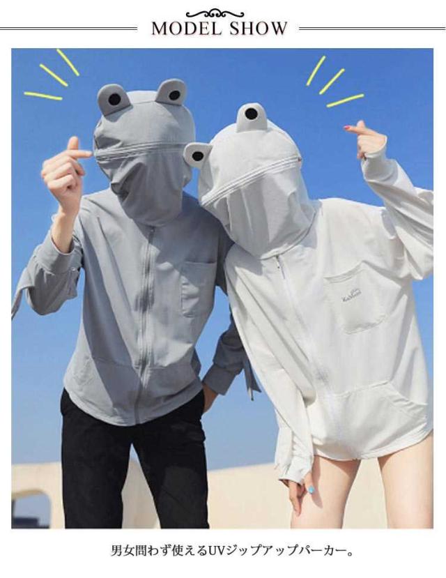 フード付き 面白い uvカット 指穴 ジップアップ 長袖 首元 uvパーカー 秋 ひんやり 接触冷感 パーカー ラッシュガード レディース メンズ カーディガン 日焼け止め 冷房対策 軽量 春 夏 吸水速乾 薄手 カエル柄