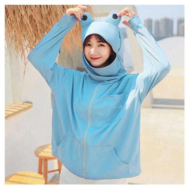 | 個性あふれるカエルの形のデザイン。男女問わず使えるUVジップアップパーカー。 ゆったりした着用感とシンプルなデザインがポイント、おしゃれ感満々で着回し力が抜群。 袖丈やや長めの指穴ありタイプで手の甲まで日焼け防止。 ハイネックだから首の後ろもしっかりガード。 薄手で軽く持ち運びしやすい、まるで着ていないかのような着心地。 大きなフロントポケットとカエルの口のように見えるジッパー式フードがとても面白いです。 | |
