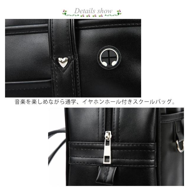 | 進学、入学のプレゼントにもピッタリ! 超実用、高品質PUスクールバック!! 取っ手部分が長いので、非常に持ちやすく、体に馴染みます。 音楽を楽しめながら通学、イヤホンホール付きスクールバッグ。 底部分にはキズや汚れ防止の底鋲付で地面に置いても安心。 大人っぽい合皮が人気で、ローファーの色と合わせるとよりスタイリッシュです。 底にはコーナーガードや底鋲がついており、擦れや汚れからバッグを守ります。 台形仕様の広マチ仕立により、収納力に優れています。 A4サイズは問題なく入るサイズで、見た目よりもしっかりした容量になっています。 メインルームは教科書やノート、A4ファイルなどもしっかり入るから、授業が多い日にもきちんと対応。手帳やお弁当も入るたっぷり収納で安心♪ | |