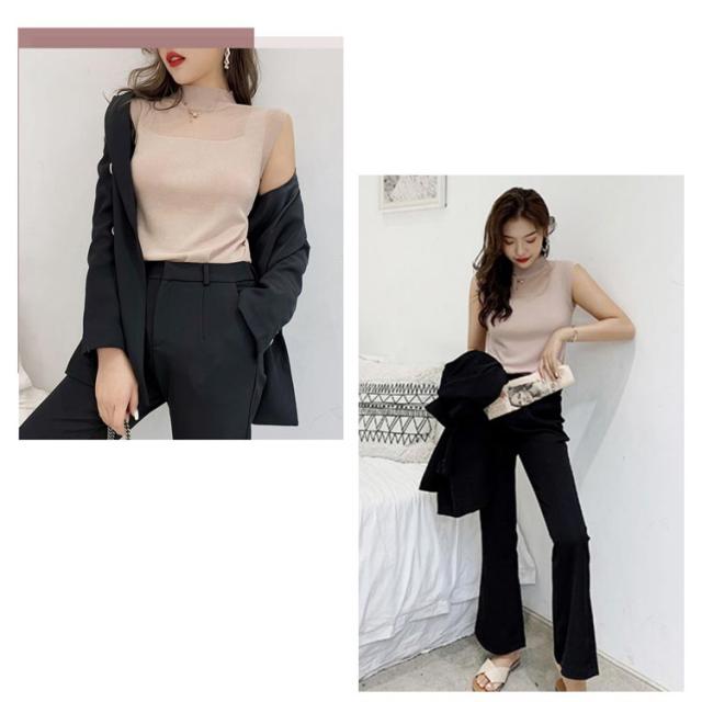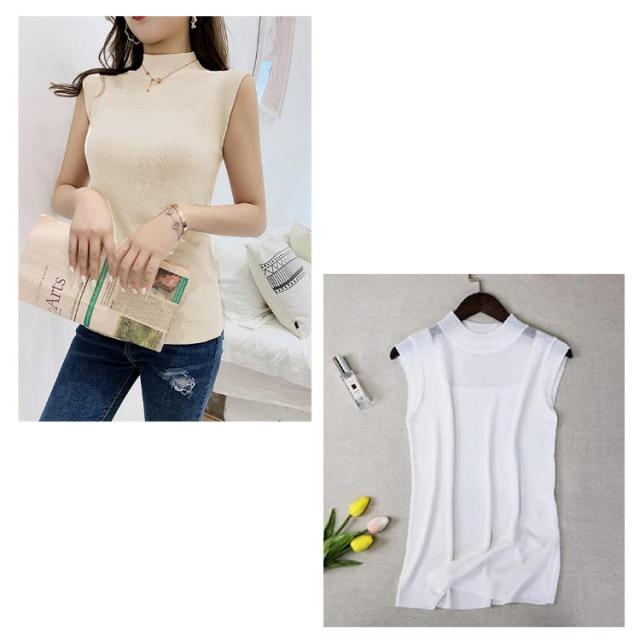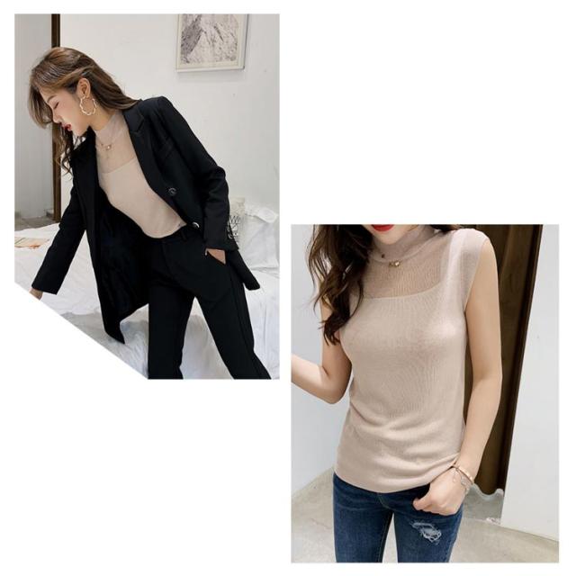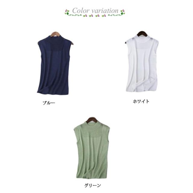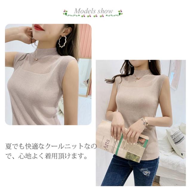 ハイネック ハイネックニットソー ハイネック シースルー サマーニット ノースリーブ レディース タンクトップ 送料無料 サマー ニット 夏 インナー 薄手 おしゃれ オフィス ニット