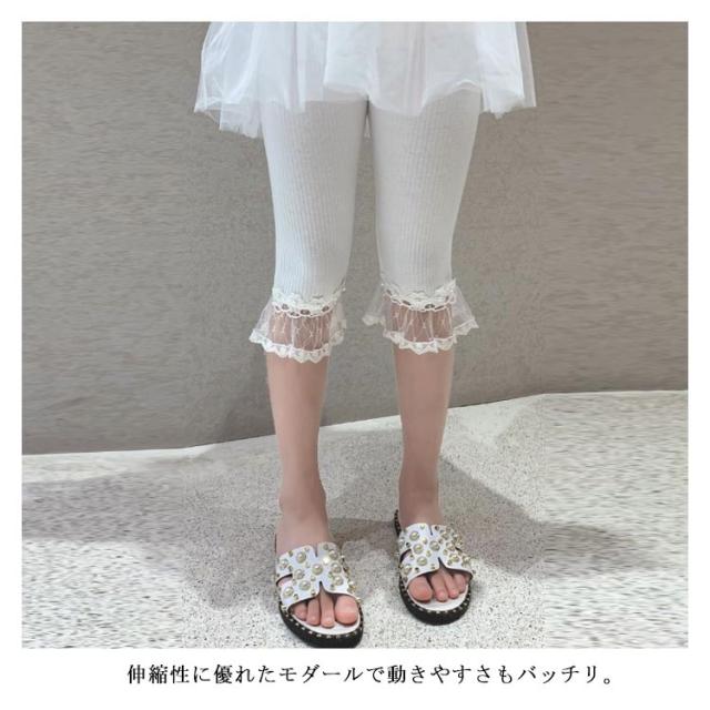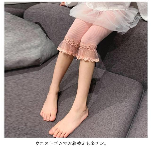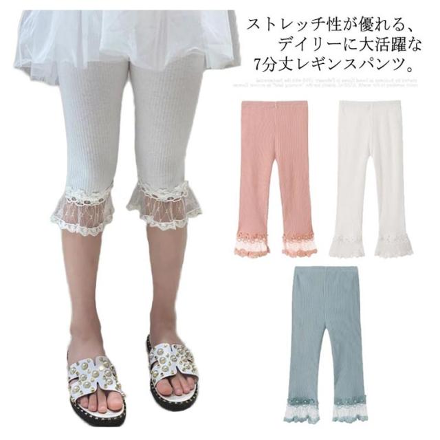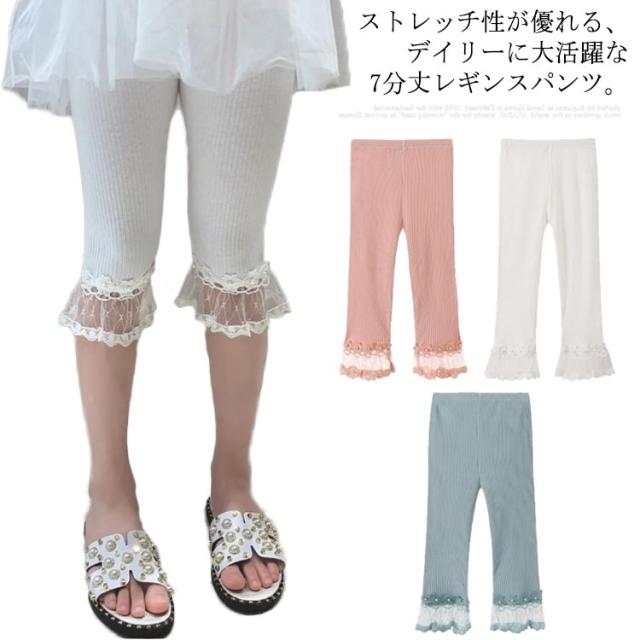 キッズ 女の子 女児 夏 七分丈 レース 子ども ストレッチパンツ 子供服 クロップドパンツ レギンス 伸縮性 かわいい フレア 150 ガールズ 着回し ジュニア 110 120 130 140 レギンスパンツ