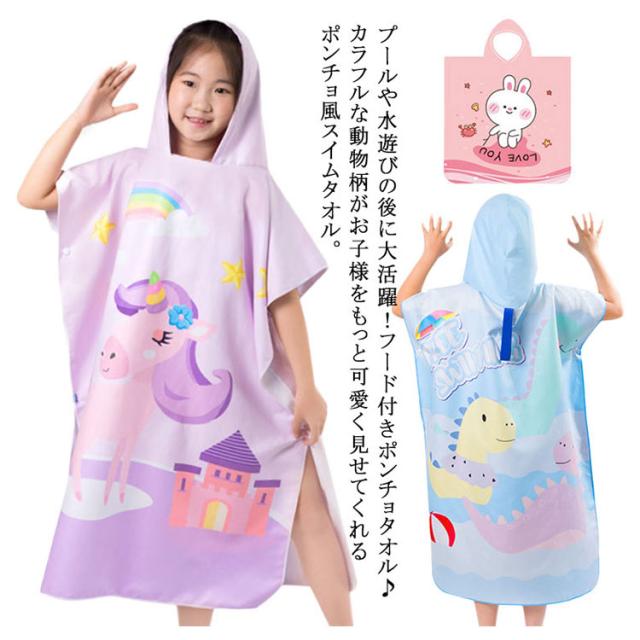 お着替えポンチョ 着替えポンチョ ビーチタオル キッズ ポンチョ 子供用バスローブ ラップタオル 子供用バスローブ タオルポンチョ マイクロファイバー 速乾吸水 柔らかい 子供 風呂 女の子 男の子 海水浴 プール バスタオル スイムウェア フード付き