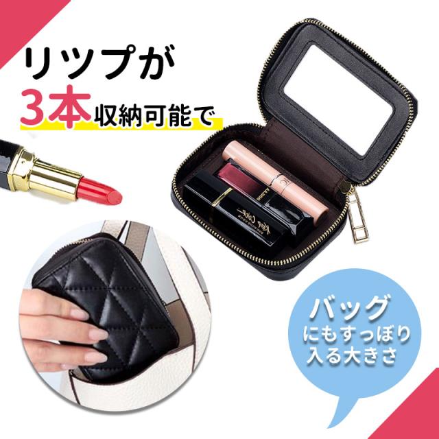 リップケース ミラー付き リップポーチ 本革 キルティング ケース 小さめ 口紅ケース メイクポーチ ポーチ アクセサリーケース