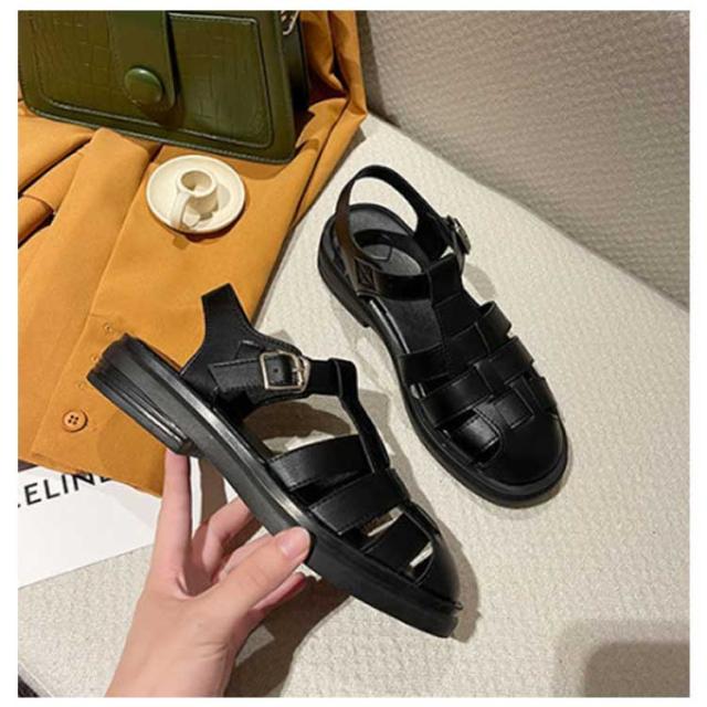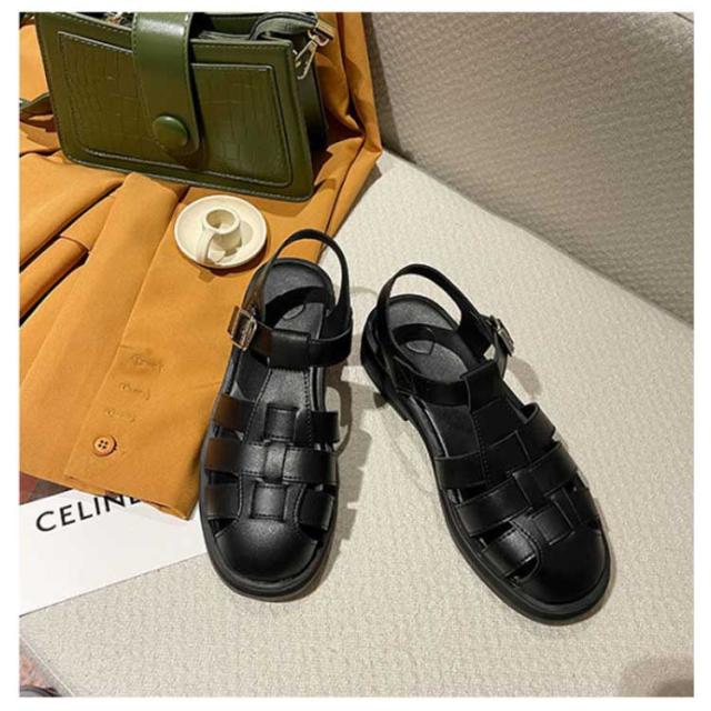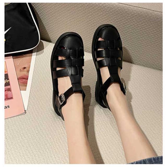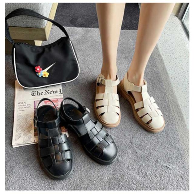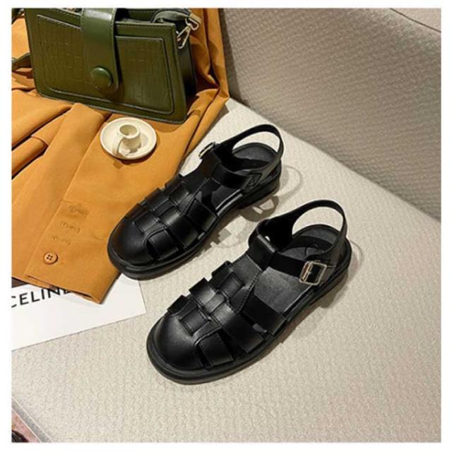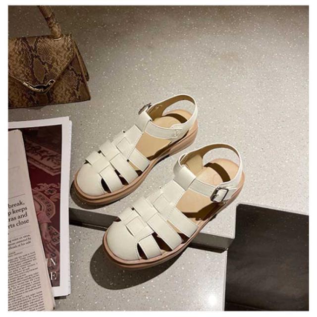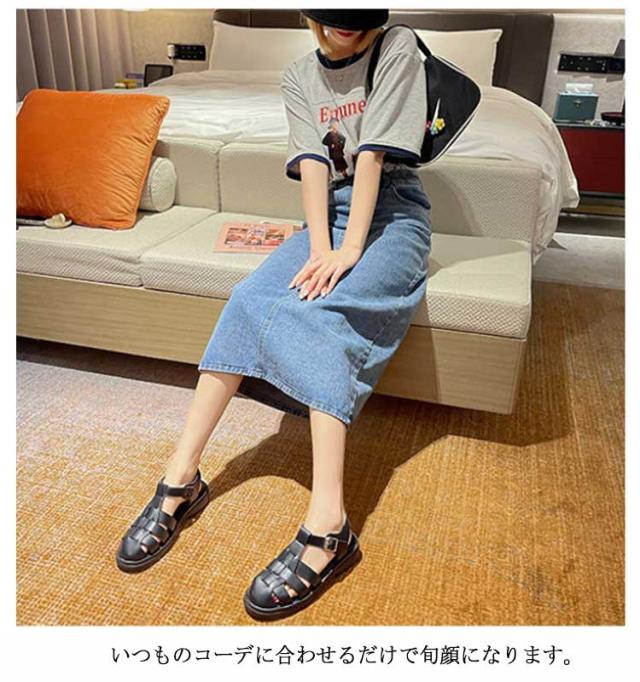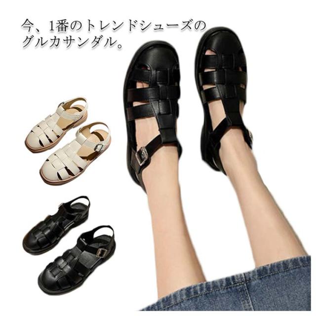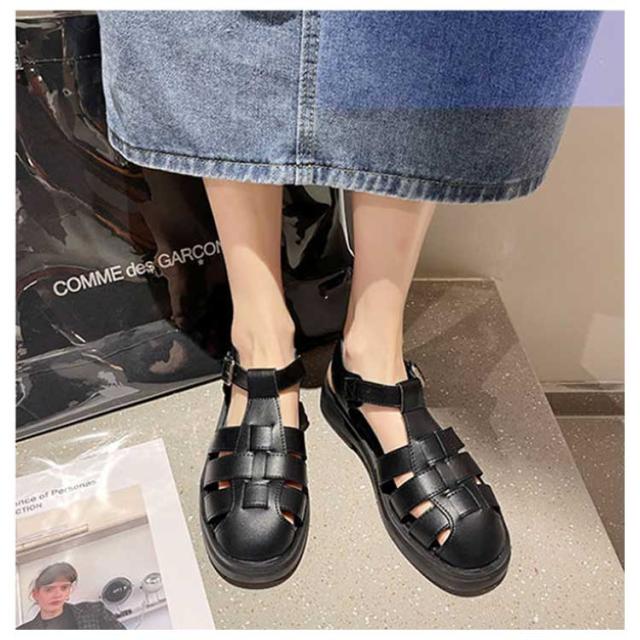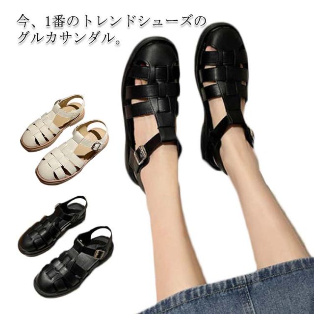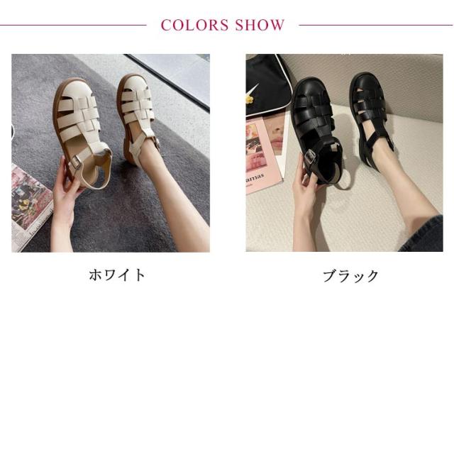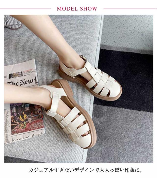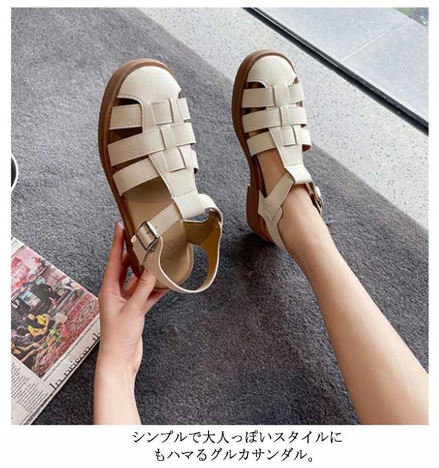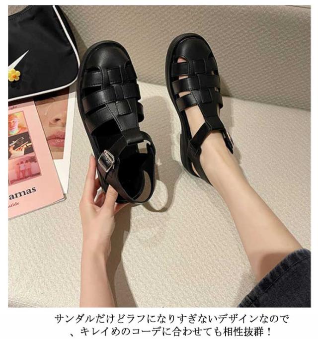 ぺたんこ サンダル フラットサンダル編み込みサンダル ベルトサンダル 前詰まり つっかけ グルカサンダル シューズ ラウンドトゥ レディース 春 夏 22.5cm 23cm ストラップ