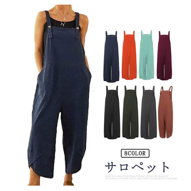 カジュアル オールインワン ロングパンツ サロペット ズボン 九分丈 綿サロペット ゆったり レディース サロペット ゆったり サロペット 送料無料 カジュアル 大きいサイズ ズボン