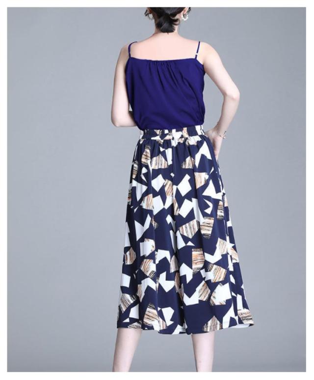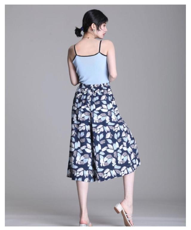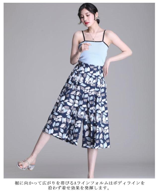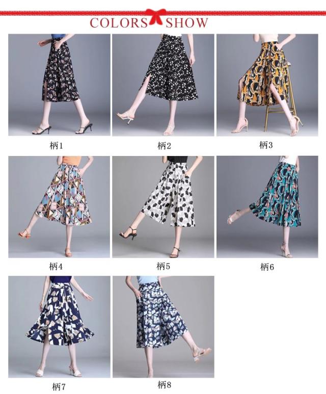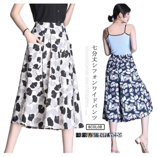 総柄 夏 シフォン 快適通気 レディース 花柄 【送料無料】ワイドパンツ ウエストゴム ガウチョパンツ フレアパンツ ワイドパンツ ボトムス きれいめ きれいめ ゆったり 涼しい シフォン 夏 ポケット付き フレア カジュアル 七分丈