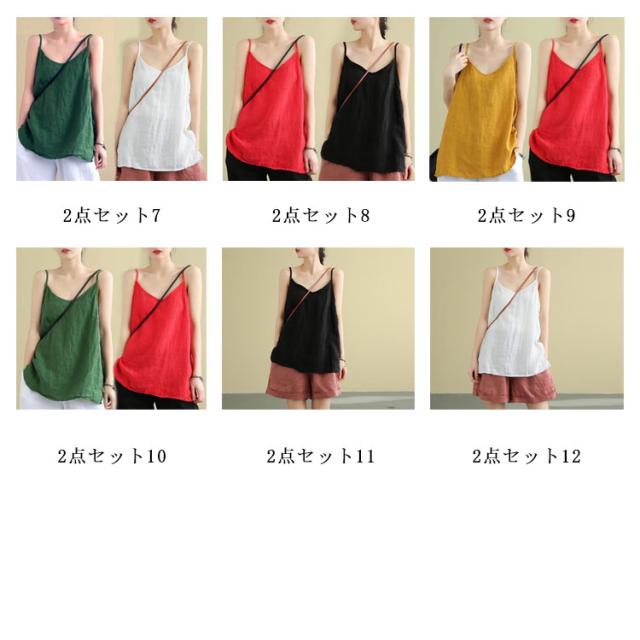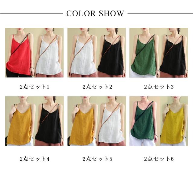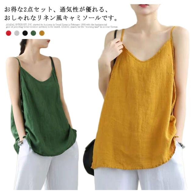 | お得な2点セット、通気性が優れる、おしゃれなリネン風キャミソールです。 透けない、薄手の生地で軽やかで涼やかな着心地。 一枚着としても、カーデやシャツのインナーとしても、蒸れずに涼しく着用できる、汗をかく季節に頼りになる一枚です。 ルームウェアにもおすすめ。 全5色、羽織のインナーとしても重ね着スタイルにも、魅力を発揮してくれる、オシャレなレイヤードスタイルが即完成しちゃう優秀アイテムです。 | |