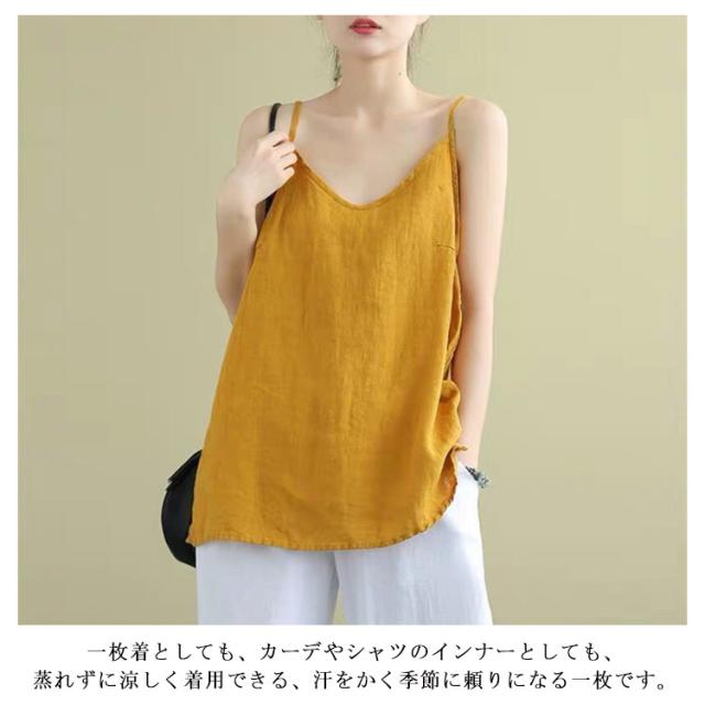 サマー キャミソール レディース 綿麻トップス 綿麻キャミソール キャミ トップス インナー ノースリーブ ゆったり コットンリネン 麻混 夏 春夏 ナチュラル おしゃれ M-3XL