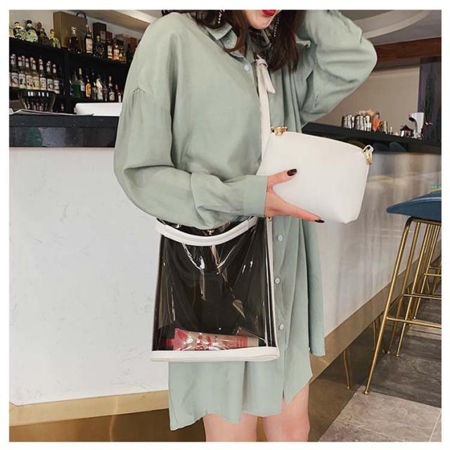 2way ビニールバッグ クリアバッグ 透明トートバッグ ショルダーバッグ レディース 透明トートバッグ ワンショルダーバッグ 斜め掛けバッグ レディース 鞄 手提げ BAG サマー ビーチバッグ 海 夏 おしゃれ 可愛い