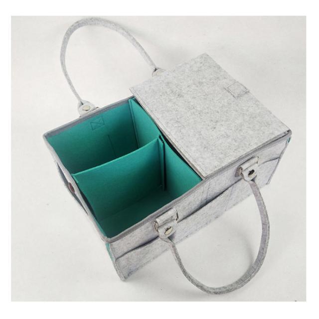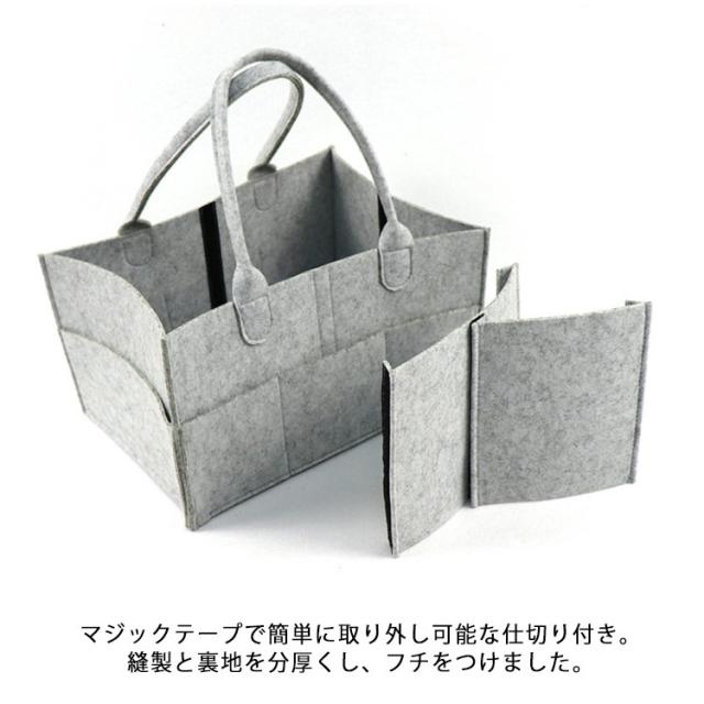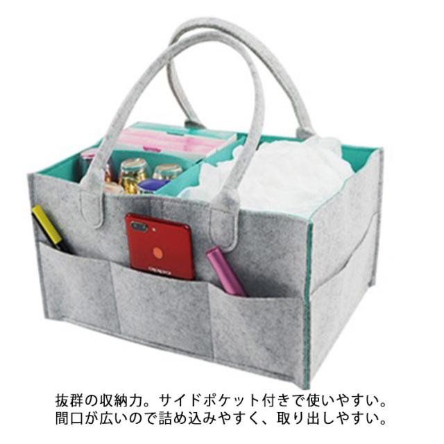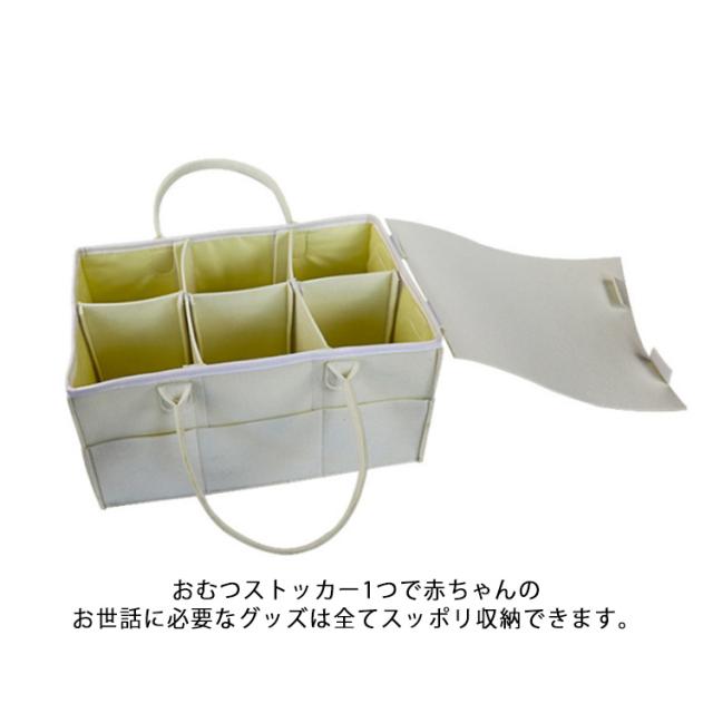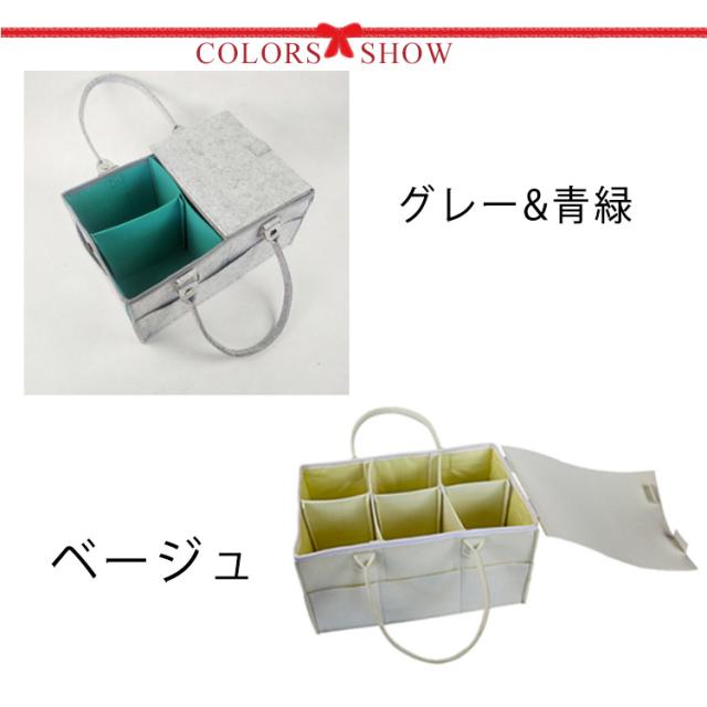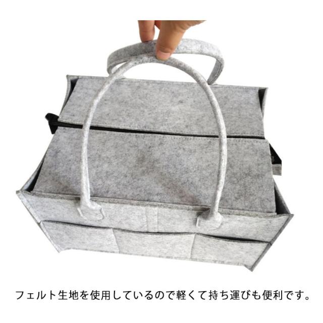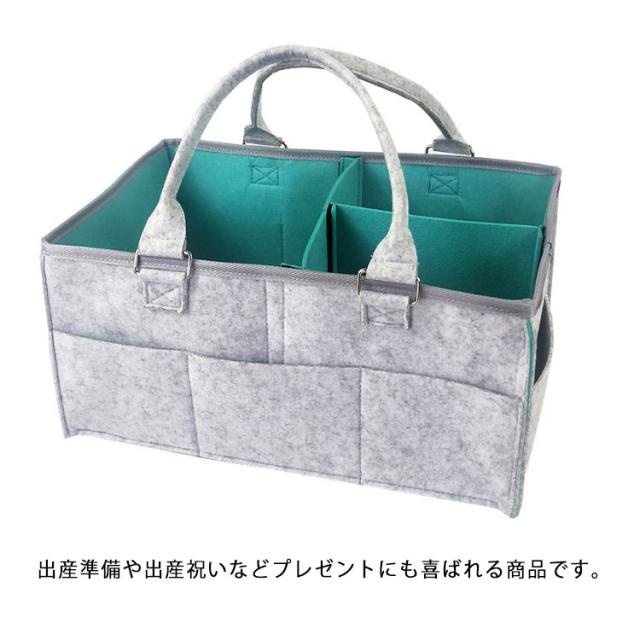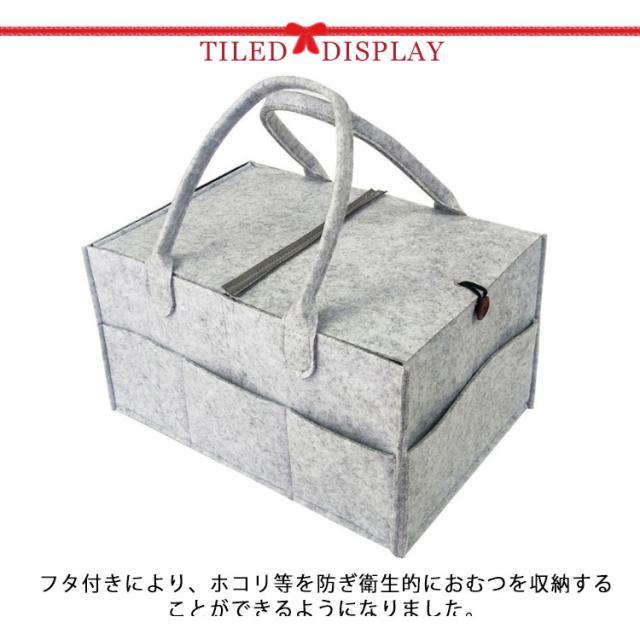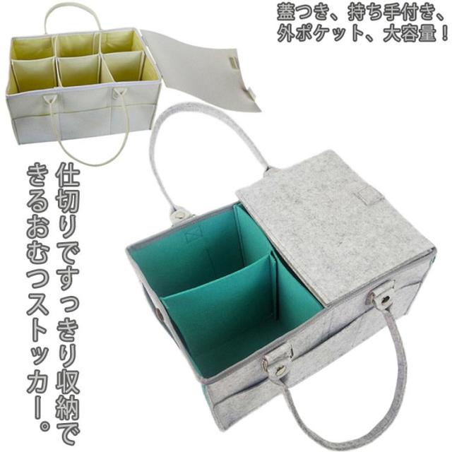 おむつストッカー 蓋つき オムツ バッグ 大容量 仕切り 小物入れ 持ち運び 持ち手付き フェルト 持ち運び 全2色 多機能 出産祝い ギフト
