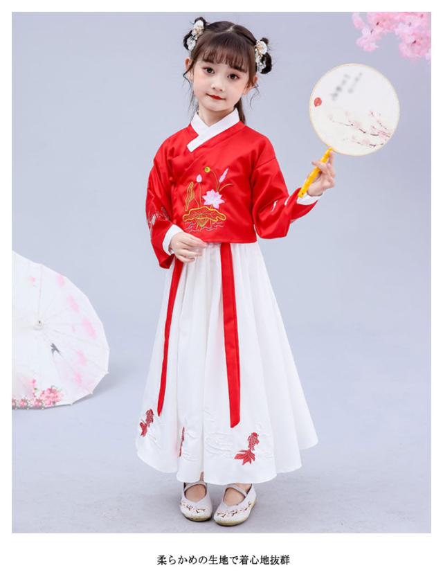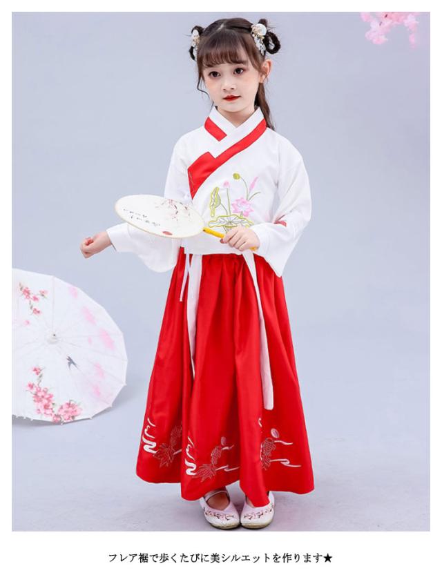 ミモレ丈 女の子 文化祭 ワンピース 送料無料 唐装漢服 ロングワンピース 中華風 チャイナドレス 立体刺繍 イベント 学園祭 子供服