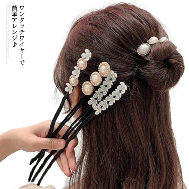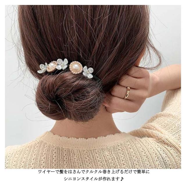 真珠 おだんご くるりんぱ くるくる シニヨンワイヤー ヘアアレンジ ラインストーン 簡単 アップスタイル シンプル 髪飾り お団子 まとめ髪 かわいい 上品 エレガント 髪飾り 無地 おしゃれ パール