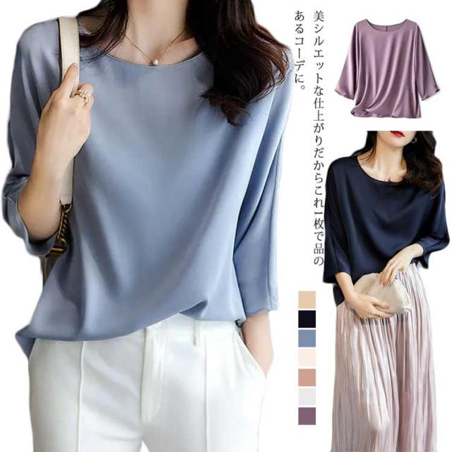 長袖 ブラウスシャツ トップス レディース 春 レディース 春夏 春秋 ブラウンス ドルマンスリーブ 七分袖 フォーマル カットソー 夏