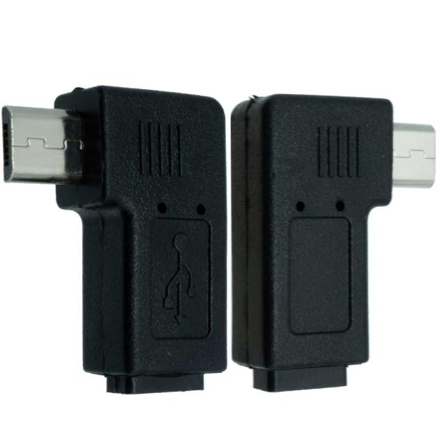 microUSB(オス)端子側がL字型の変換コネクタの右、左向きのセットです。