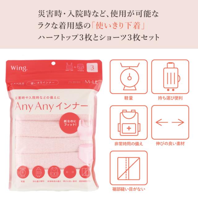 ウイング うぃんぐ wing 下着 肌着 ブラジャー ブラ ハーフトップ ノンワイヤー ワイヤーなし ノーマルショーツ スタンダードショーツ 3点セット 3枚セット セット販売 セット商品 ブラショー ブラとショーツ 持ち運び 災害時 非常時の備え 入院時 アウトドア 旅行 宿泊 来客1回使いきり 軽い ひびきにくい らくちん ラク 快適 楽 よくのびる 伸びがよい おすすめ ワンサイズ M L LL |