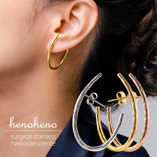 ハワイアンジュエリー ピアス レディース 金属アレルギー対応 しずく ドロップ ハーフ フープ オーバル 知的 大人 個性的 サージカルステンレス スタッド メンズ 男女兼用 高見え つけっぱなし 重ねづけ 女性 大人 シンプル henoheno