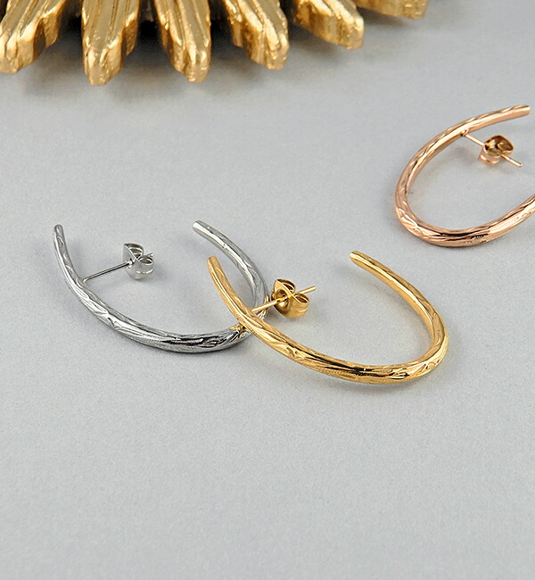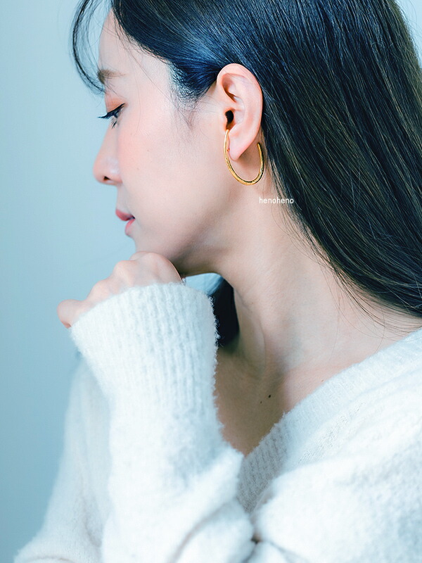 | 1本の華奢なラインが生みだす存在感。 耳たぶを覆うような個性のあるデザインは 美しくも遊び心を持った知的な大人な印象。 繊細なハワイアン模様でエレガントに揺れる大きめフープ。 無駄のない洗練されたニュアンスは、 可愛く、上品に、カジュアルに、モードに、フォーマル... どんなコーデにも合わせやすく、 性別を問わずお使いいただけるデザインとなっております。 | ||||