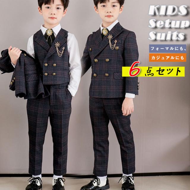 男の子 6点セット チェック柄 スーツ キッズ 入学式 子どもフォーマル 男の子 おしゃれ 子供服 フォーマル 子供スーツ カジュアル スーツセット