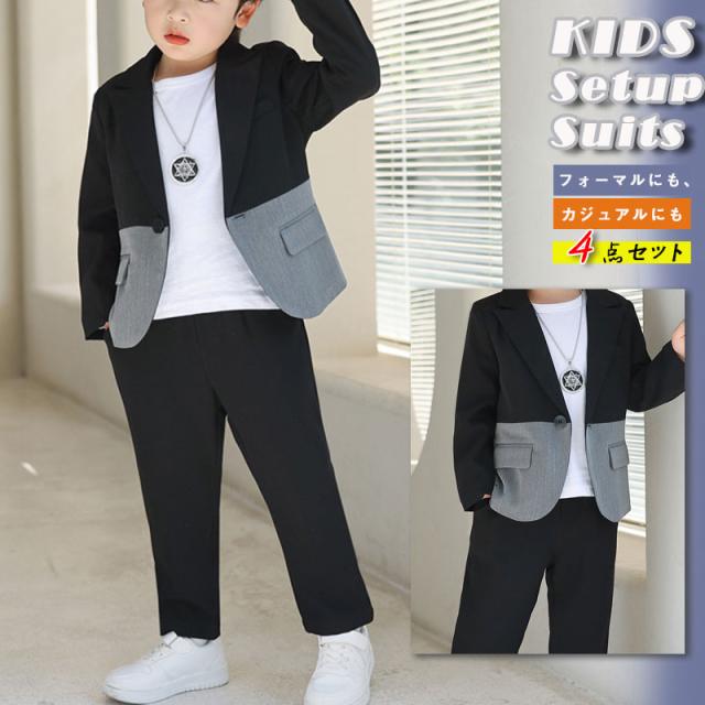 子供 スーツ キッズ フォーマル 4点セット 切り替え 入学式 男の子 ゆったりサイズ 小学生 卒園式 子供服 フォーマル フォーマル セットスーツ