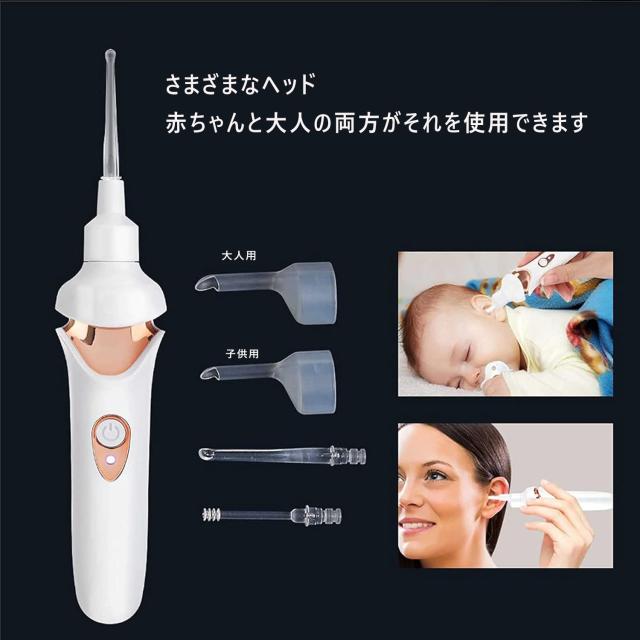 【低騒音・低振動】:耳垢除去器の騒音レベルはわずか32デシベルで、お子様が寝ている間に耳掃除ができます。 マッサージのように心地よい微振動をお楽しみください
