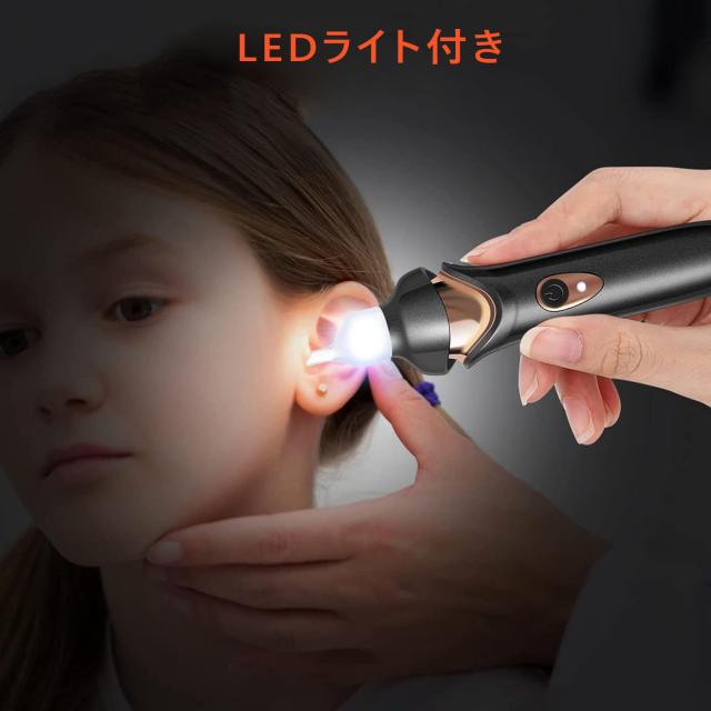 耳垢掃除機 電動イヤークリーナー ライト付き 真空吸引 耳掃除キット USB充電式 耳垢除去 耳垢吸盤 子供&大人用 LEDライト付き