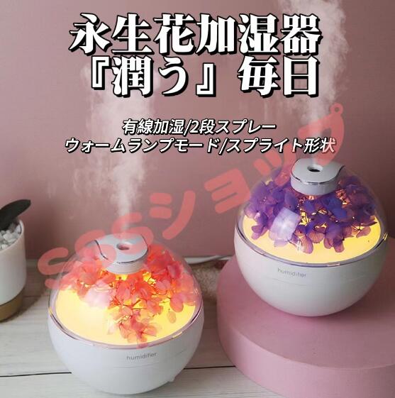 加湿器 超音波式 おしゃれ アロマ対応 USB LEDライト オフィス 静音 リビング 上から給水 花 簡単操作 フラワーアレンジメント