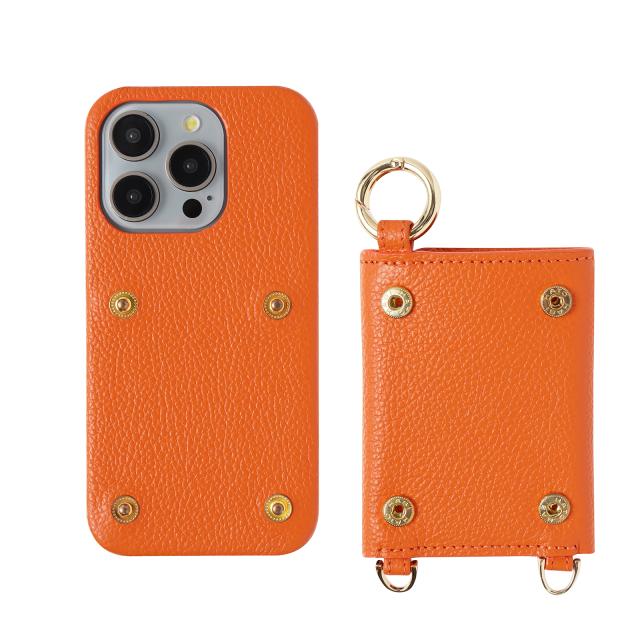 [iPhone15 に相応しい 最高品質のスマホケース] iPhone15 / Plus / Pro / ProMax スマホ ケース 本牛革 レザー カバー 財布付き ケース オレンジ ストラップ付 職人仕立て ハンドメイド メンズ&レディース 個性的 高級 牛革 アクセサリー シンプル エレガント