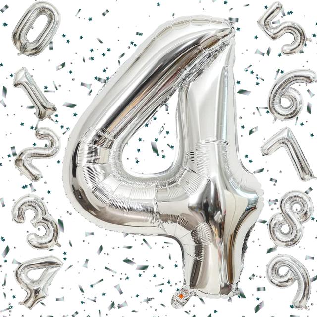 Exgox 数字バルーン シルバー アルミ風船 誕生日 40インチ ナンバー4 ハッピーバースデー 飾り付け 男の子 女の子 ギフト 記念日 お祝い