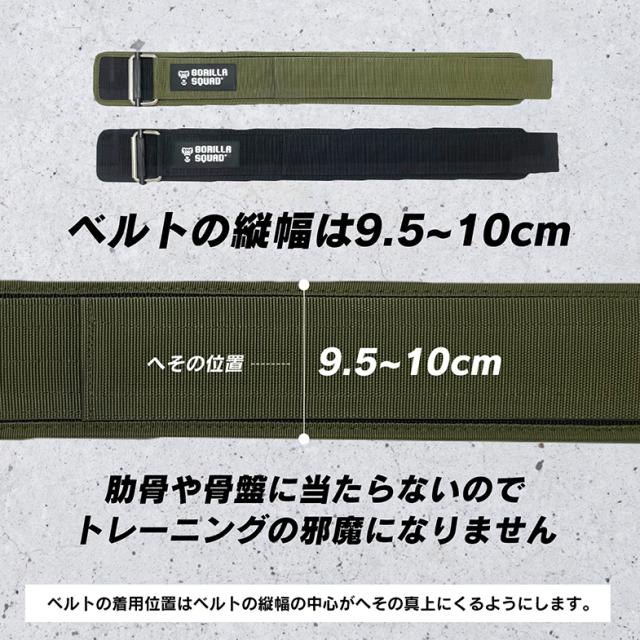 ●スクワット、デッドリフトなど腰に負担がかかるトレーニングを行う際にしっかりサポートします。ベルクロで自由に無段階調整可能。