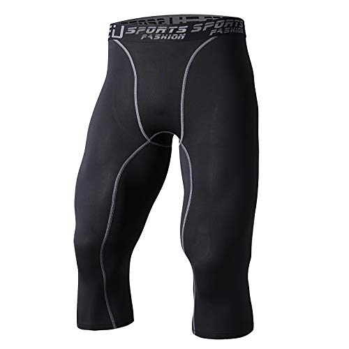 Sillictor スポーツ スパッツ メンズ パワーストレッチ 7分丈 アンダーウェア コンプレッション タイツ UVカット + 吸汗速乾 ブラッ