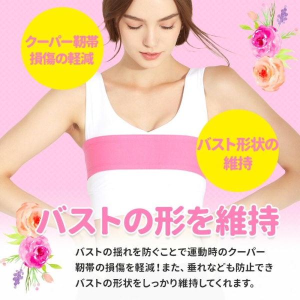 「バストが垂れるのを防ぎたい」「バストが揺れて痛い」などのお悩みをお持ちの方に、バストサポートバンドは大いに役立ちます。 ナイトブラのようにバストを固定し、揺れによるストレスから解放します。