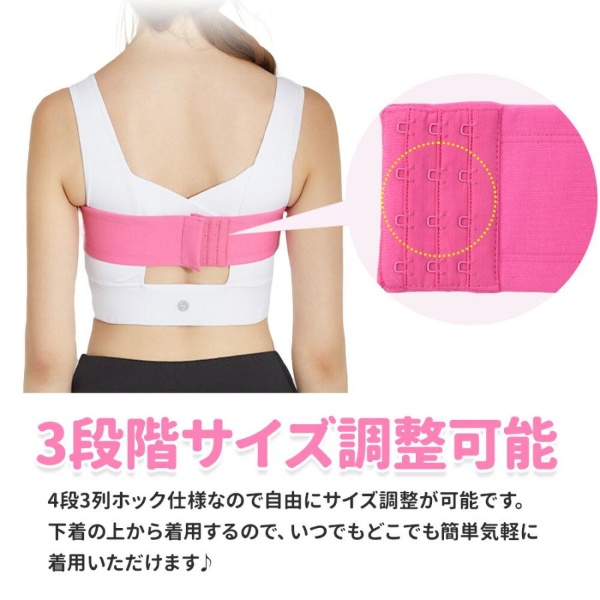 3列ホックでサイズ調整が可能なので、あなたにピッタリのフィット感を得られます。 サイズはS、M、Lから選べ、色はブラック、ホワイト、ピンク、ブルーと豊富です。